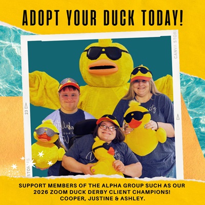 Duck adoptions will provide fundings for programs and services such as transportation, workforce development, supportive living and integrated adult day. Learn more about The Alpha Group at alphagroup.net. Learn more about Zoom Duck Derby at https://www.duckrace.com/delaware .